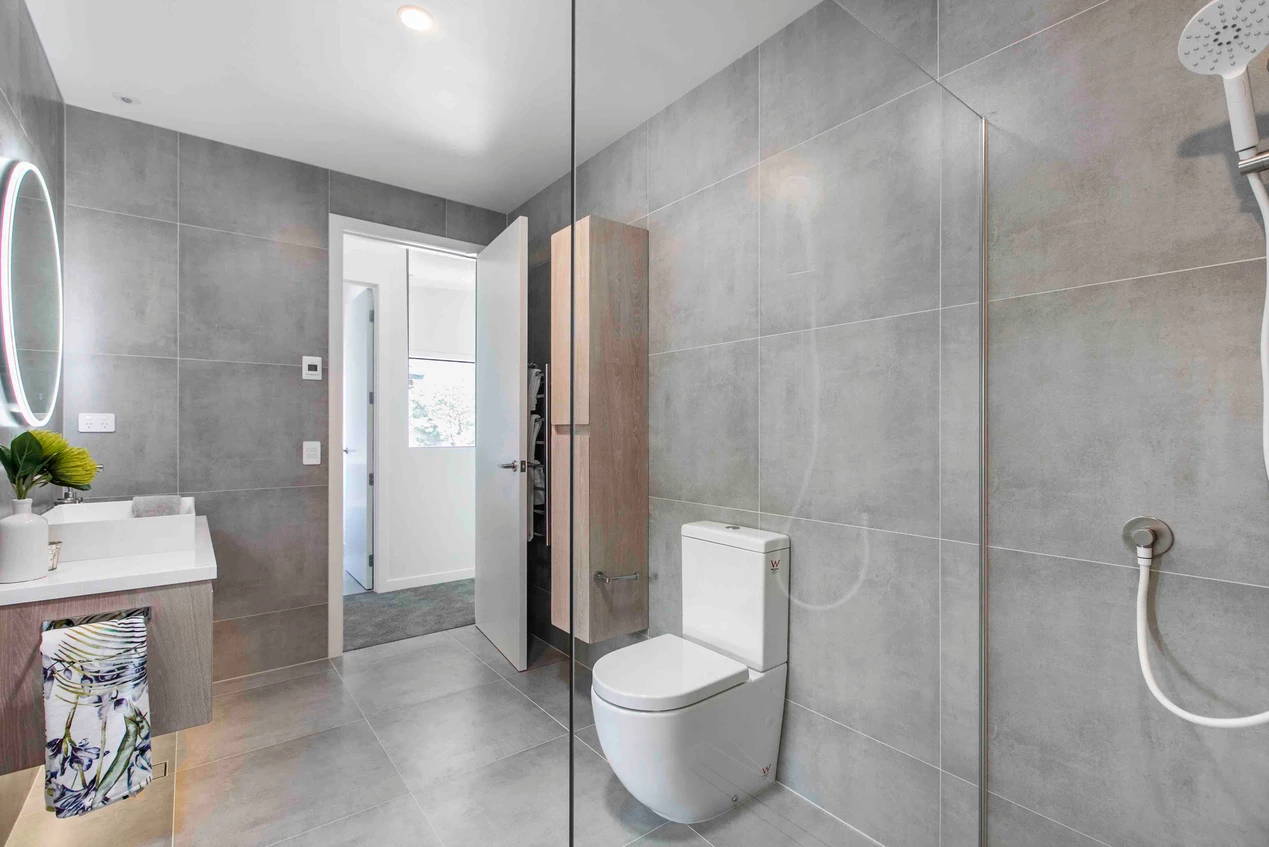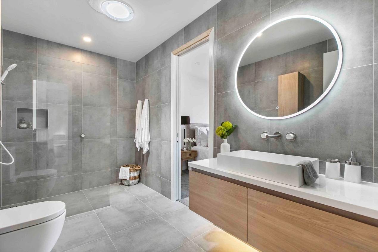 This bathroom project in Auckland showcases a range of Newtech solid timber bathroom vanities.